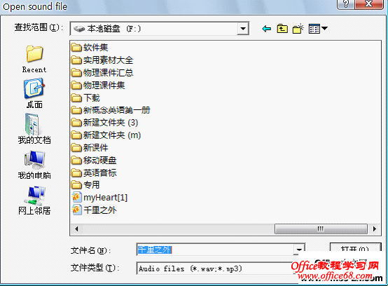 浏览并选中你需要插入的mp3文件,点打开,弹出如图所示内容: