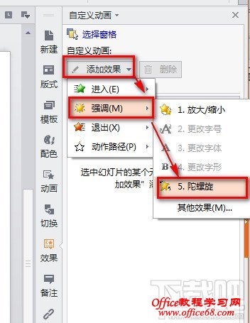 3:点击“添加效果”--“强调”--“陀螺转”