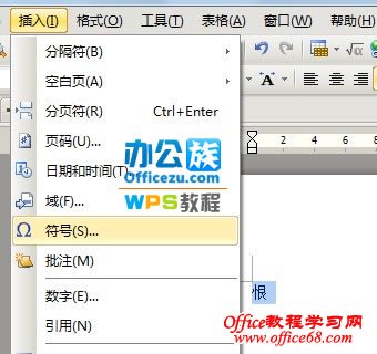 1 打开WPS文字,输入任意一个带有该偏旁的汉字,选中该字,点击菜单栏--插入--符号。