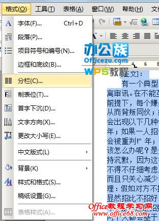 3 分栏显示。选中文字,点击格式--分栏,选择分栏数目,但是不要为了太节省而影响了文章阅读。