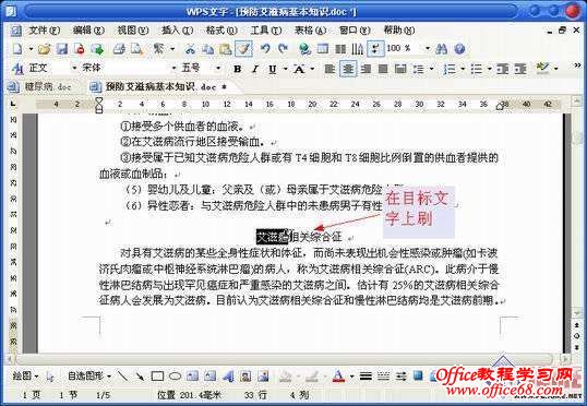 第三步:点击文档标签并切换到目标文档中,将带有格式刷标志的鼠标光标向文字上进行拖曳,这样格式就“克隆”到目标文档的相应文字中了(如图2)。