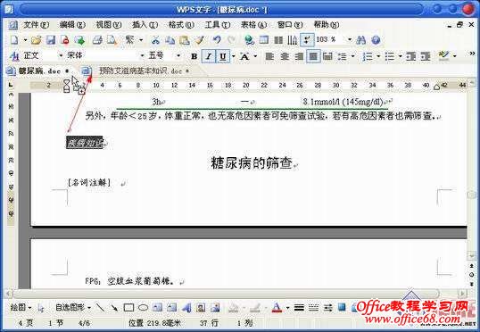 另外,同样的内容可能出现在两个文档中,比如小标题等,这里只要在样本文档中选中需要“克隆”的文字,并将其拖曳到文档标签上,WPS 2007会自动切换到目标文档,最后松开鼠标左键即可完成连文字带格式的复制(如图3),非常方便。