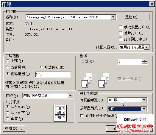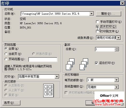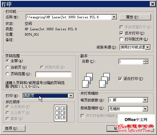 通过修改打印设置实现特殊打印,选择“文件”→“打印”,弹出“打印”对话框,现在来举例说明不同的打印设置效果