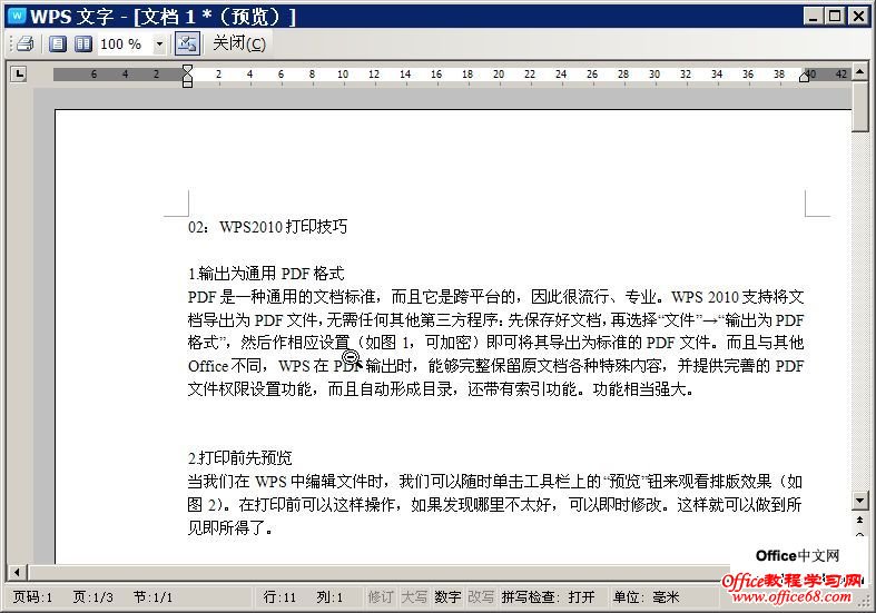 在打印前可以随时单击工具栏上的“预览”钮来观看排版效果(如图2),并且修改的结果可以即使显示,非常方便。