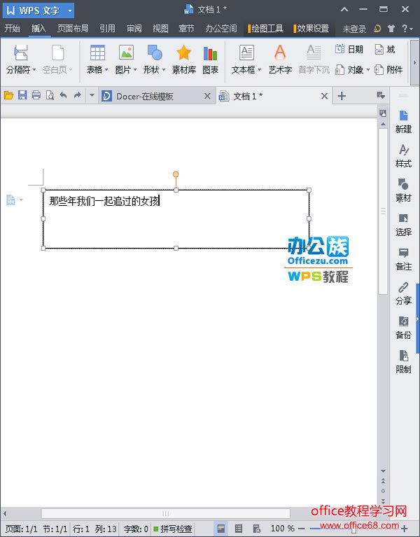 在WPS文字文档中,输入文字以后,你也可以做到让文字实现移动,你是不是很吃惊呢?在文本中对一定的文字进行移动设置,有利于突出主题,很吸引读者。那么我们该如何做到这样的效果呢,在这里小编就给大家支几招。 操作步骤 1 打开我们的WPS文字中的一篇空白文档,,把鼠标切入到“插入”选项卡,带你“文本框”选项组,在弹出的下拉菜单中选择“横向文本框”命令; ![]() 点击横向文本框 2 在文档正文部分插入的文本框中输入内容,如下; ![]() 输入内容 3 用鼠标选中输入的内容,然后单击右键,在弹出的快捷菜单中选择“字体”命令; ![]() 选择字体 4 在弹出的“字体”对话框中,把字形设置为“常规”,字号为“一号”,颜色为“粉红”然后点击“确定”; ![]() 设置字体格式 5 返回到文档中,用鼠标选中文本框,单击右键,在弹出的快捷菜单中选择“设置对象格式”命令; ![]() 设置对象格式 6 在弹出的“设置对象格式”的对话框中,点击“文本框”选项,勾选“允许文字随对象旋转”,然后点击“确定”; ![]() 允许文字随对象移动 7 选中文本框,此时在文本款的中间会会出现一个橙色的按钮,用鼠标拖动按钮进行旋转; ![]() 旋转文本框 8 选中旋转之后的文本框,重复以上第五个步骤,之后会弹出一个“设置对象格式”的对话框,在“颜色与线条”的选项区域,把线条设置为“无线条”格式,然后单击“确定”; ![]() 选择无线条 9 回到文档中可以看到我们已经写出了旋转的文字; ![]() 旋转的文字 提示:以上虽然步骤比较繁琐,但是只要步骤正确,其实并不难,在这里需要注意的是,在文本框中把文字旋转以后,我们必须要把文本框给去掉,这时候只需要把文本框的线条去掉即可。 |
