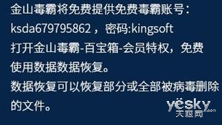 金山毒霸也推出了专业数据恢复工具,恢复概率较高,而且经金山毒霸还非常良心的提供了免费毒霸账号。如果你的数据丢失了,不妨试试,但是别抱过高期望,能恢复的数据是有限的。