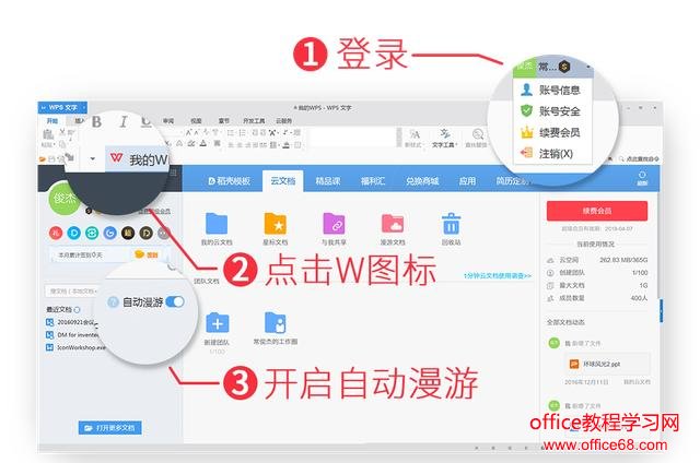开启自动漫游功能之后,只要你的文档曾经在WPS中打开过,就会被自动安全备份在WPS中,进一步降低文档丢失风险。