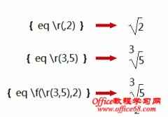 先说一个单纯的三次根下二这样的数字输入吧。还是先按下Ctrl+F9快捷键,然后在大括号内输入域代码eq r(3,2),选中代码中的数字3,将它的字号调小,然后按下右键菜单中的切换域代码命令,就可以得到数字三次根下二了,如图2所示。 操作步骤 显然,如果要得到二次方根,那么只要将代码中的数字3改成2就可以了。不过,通常我...