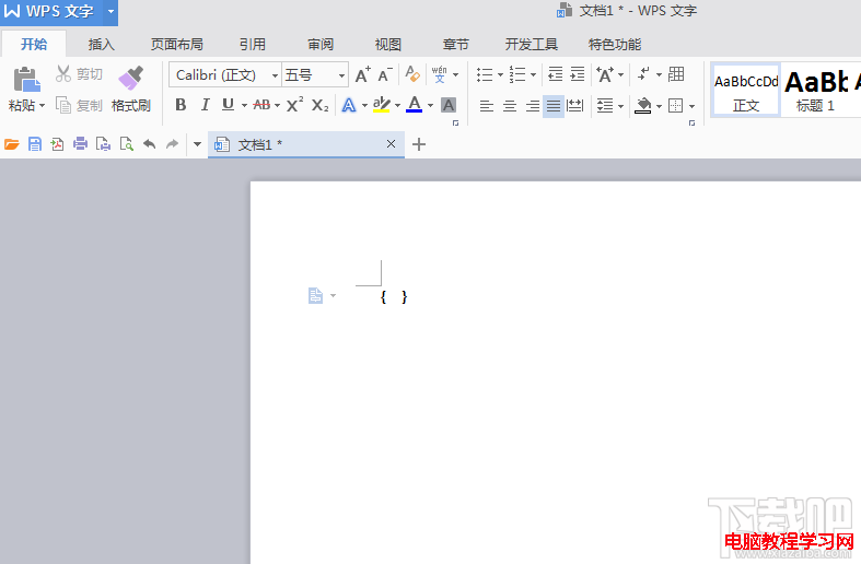 1、打开WPS,新建一个文档,调出WPS的域,方法是同时按下CTRL+F9(注意F9键是fn键加最上面的f9键),这个时候文档中就会出现“{  }”符号,这就是WPS的域啦。