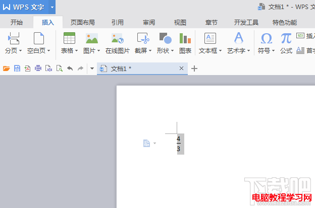 3、把“{EQ F(4,3)}”选择起来,然后按下F9键(就是fn+f9键),分数就出来了。很简单吧,希望对大家都有所帮助!